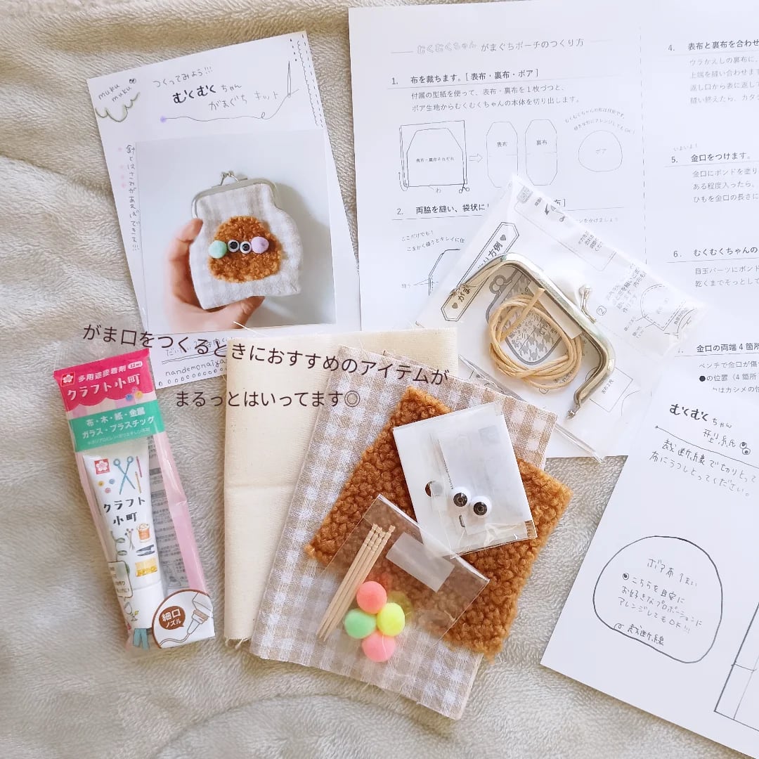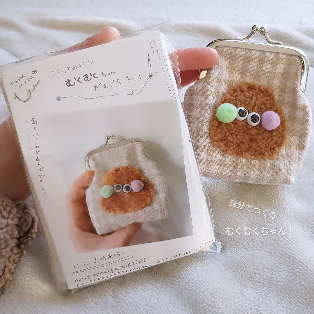かわいくて使いやすい、むくむくちゃんのがま口を自分で作るキットです。